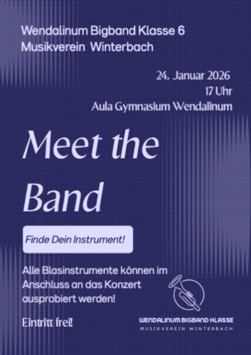 Der Musikverein Winterbach lädt gemeinsam mit der Wendalinum Bigband Klasse herzlich am Samstag, 24. Januar 2026, um 17 Uhr zu einem kleinen Konzert in die Aula des Gymnasiums Wendalinum ein.